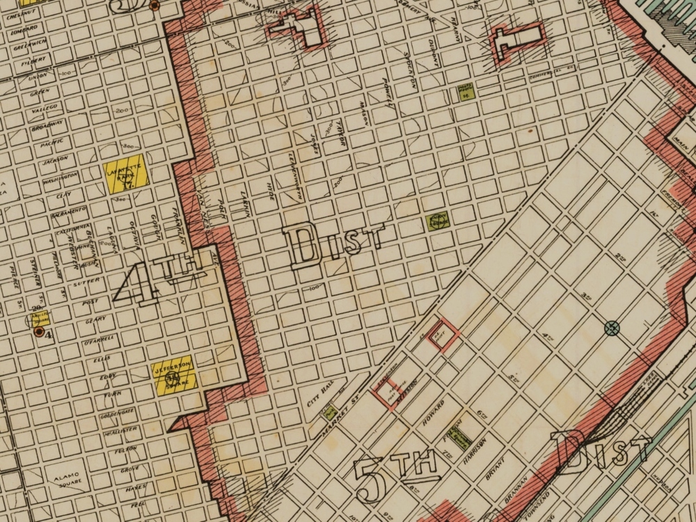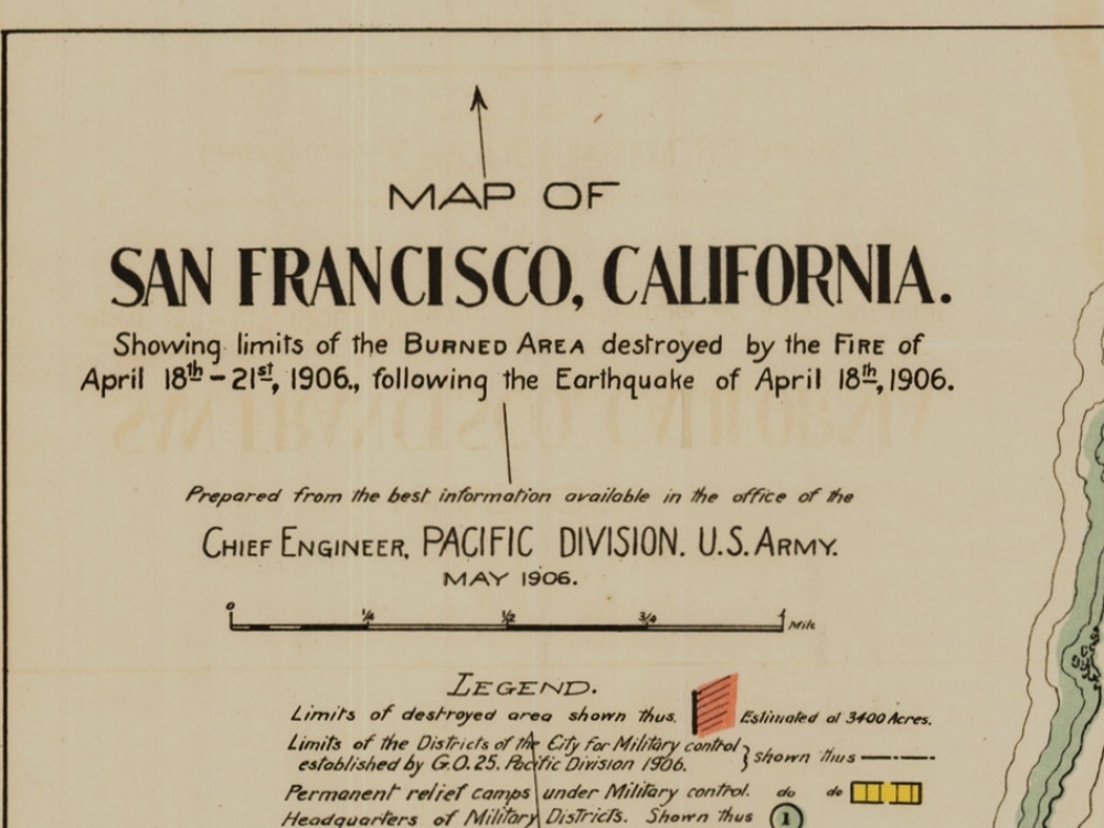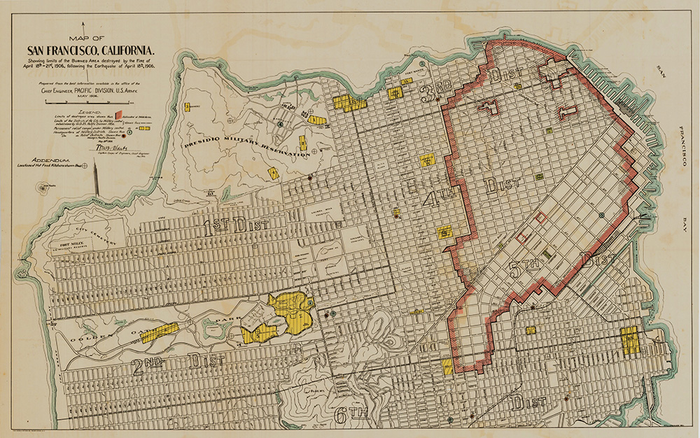 A Vintage Map depicting the extent of the San Francisco Fire in 1906 following the great earthquake of April 18th 1906.