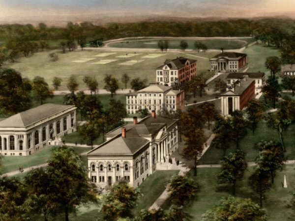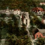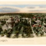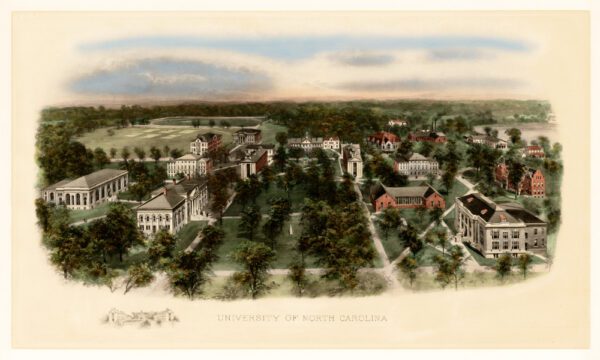 An early birdseye view of the University of North Carolina, Chapel Hill. In the early 1900s, Littig & Company commissioned a number of artists to create watercolors of some of the nations most prestigious colleges. This panoramic view of Chapel Hill was by the accomplished artist Richard Rummell (1848-1924).