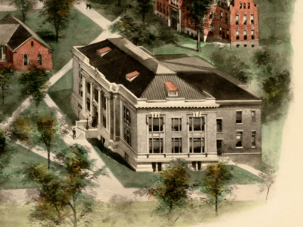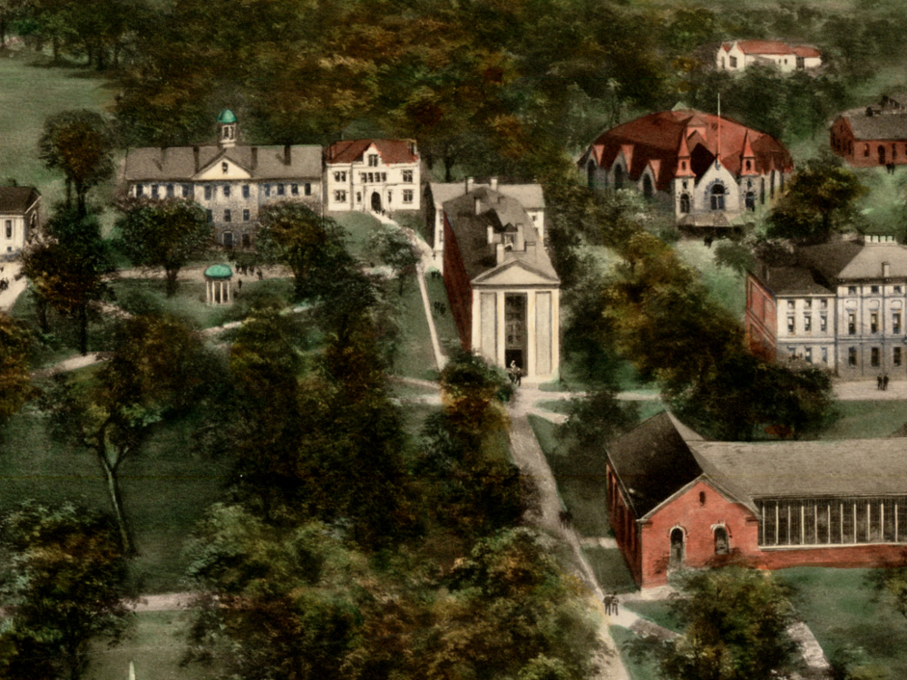 An early birdseye view of the University of North Carolina, Chapel Hill. In the early 1900s, Littig & Company commissioned a number of artists to create watercolors of some of the nations most prestigious colleges. This panoramic view of Chapel Hill was by the accomplished artist Richard Rummell (1848-1924).