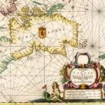 Pieter Goos’ Seas Chart of the British Isles from 1669. A rare and striking map, centred on the Isle of Man, and oriented with west to the top.
