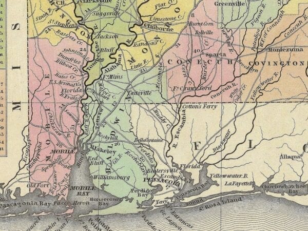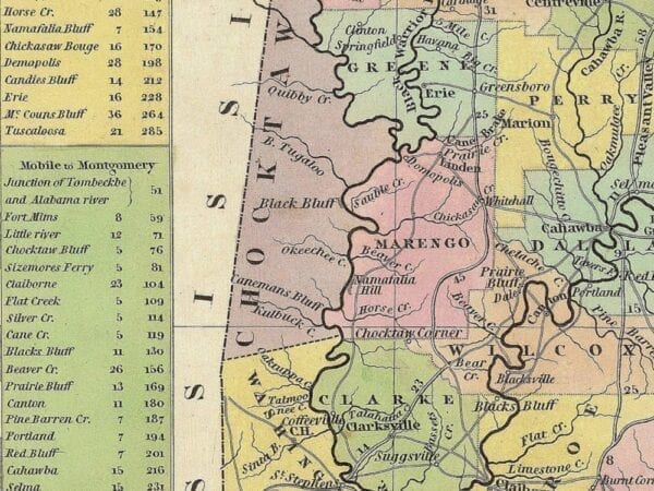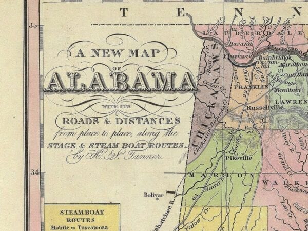 Vintage Full Coloured Map of Alabama from Henry S. Tanner’s New Universal Atlas