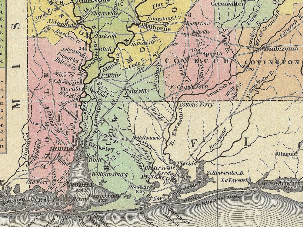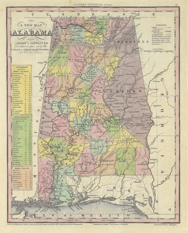 Vintage Full Coloured Map of Alabama from Henry S. Tanner’s New Universal Atlas