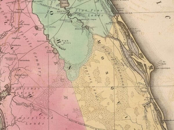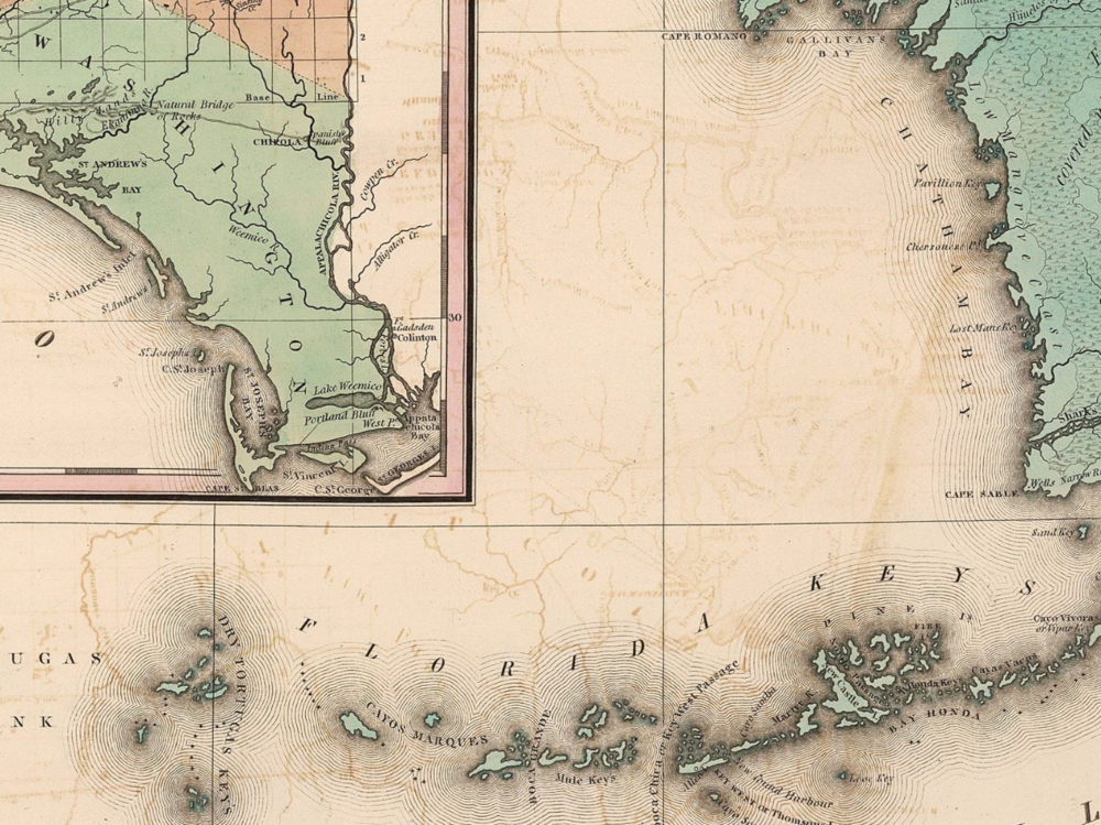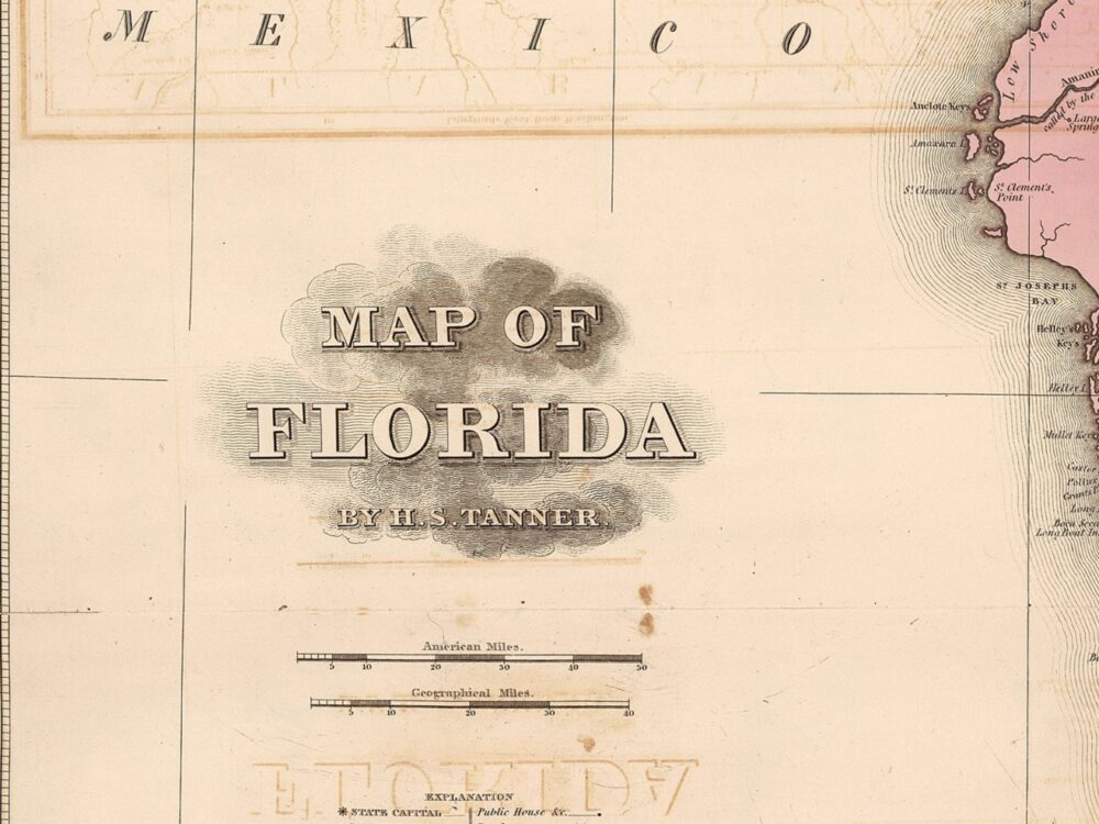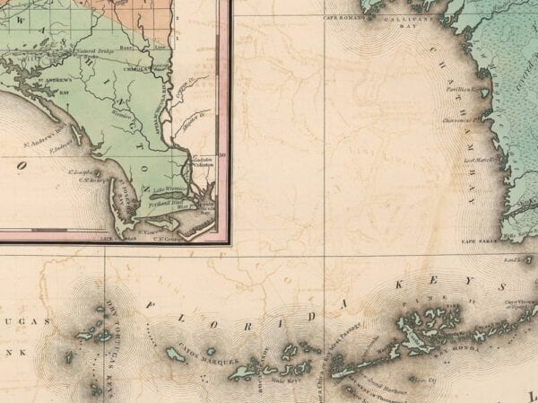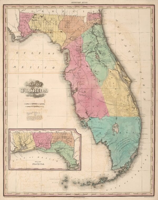 Vintage Full Coloured Map of Florida from Henry S. Tanner’s New Universal Atlas