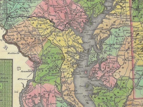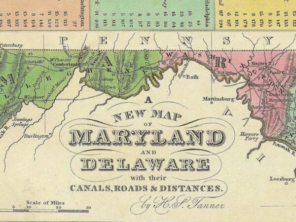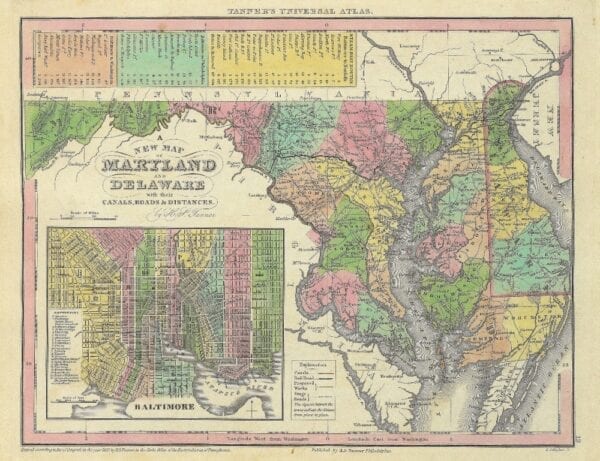 Vintage Full Coloured Map of Maryland and Delaware from Henry S. Tanner’s New Universal Atlas