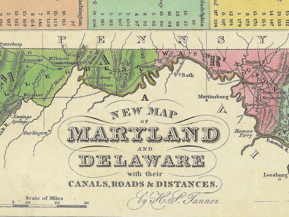 Vintage Full Coloured Map of Maryland and Delaware from Henry S. Tanner’s New Universal Atlas