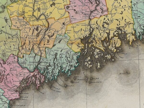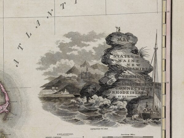 Vintage Full Coloured Map of New England from Henry S. Tanner’s New Universal Atlas