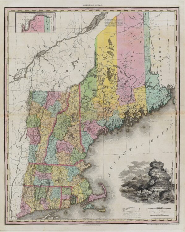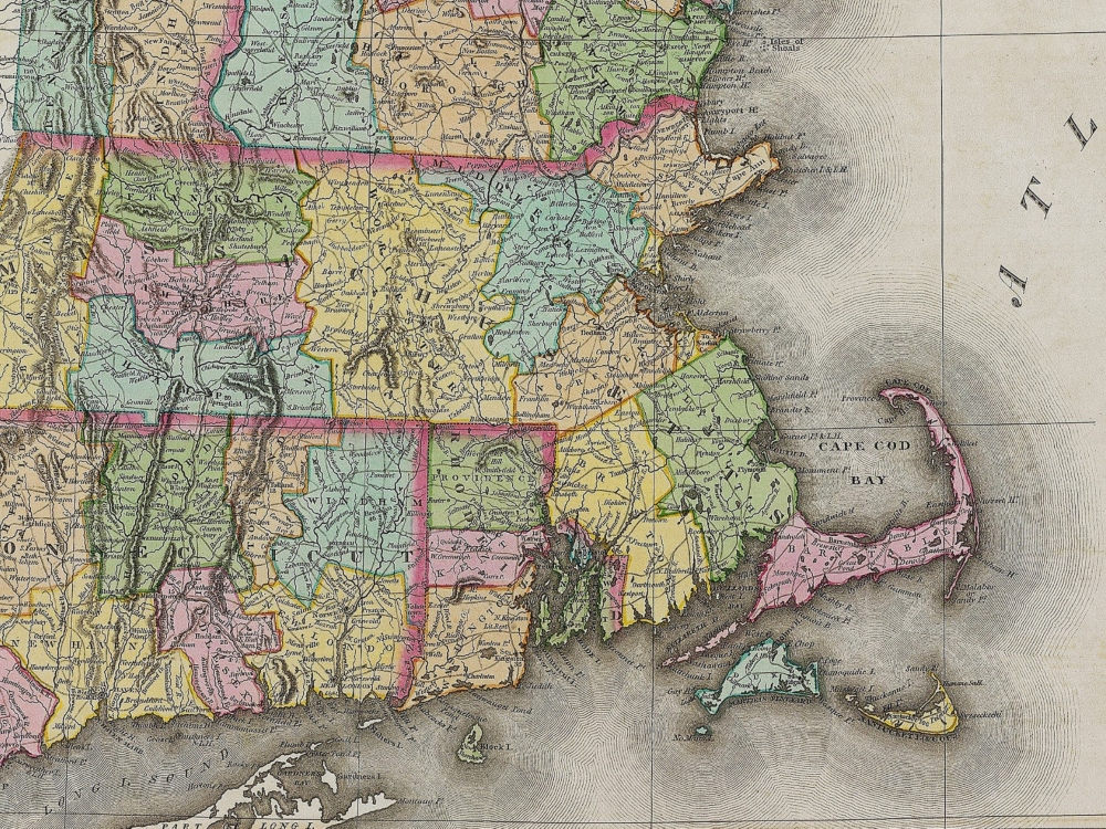 Vintage Full Coloured Map of New England from Henry S. Tanner’s New Universal Atlas