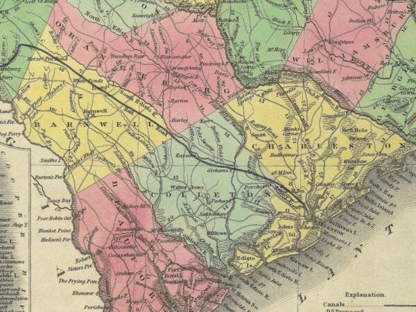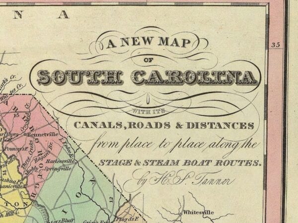 Vintage Full Coloured Map of South Carolina from Henry S. Tanner’s New Universal Atlas