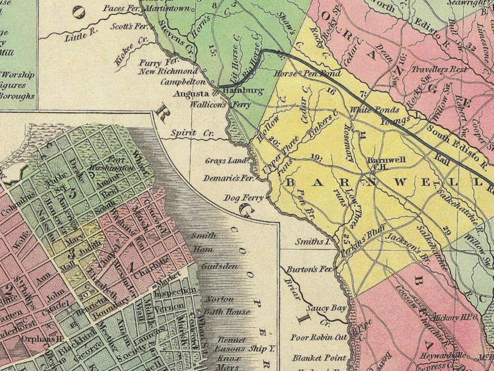Vintage Full Coloured Map of South Carolina from Henry S. Tanner’s New Universal Atlas