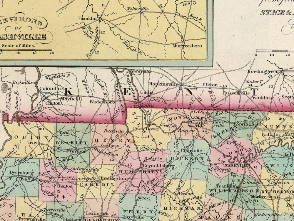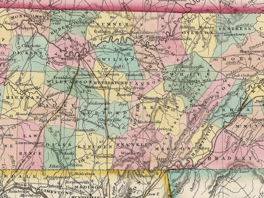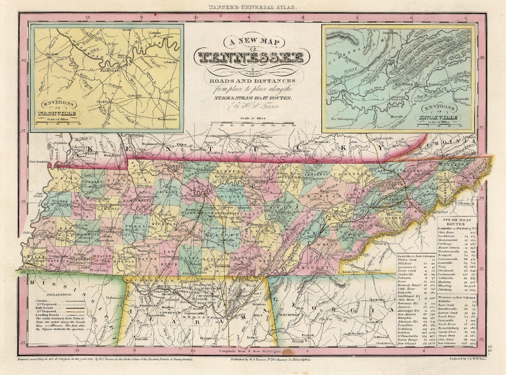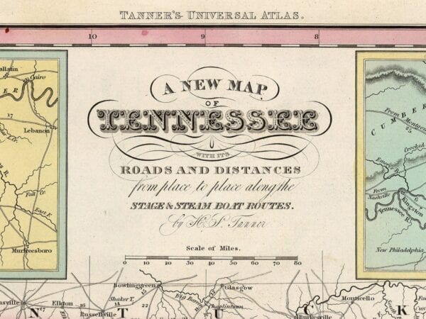 Vintage Full Coloured Map of Tennessee from Henry S. Tanner’s New Universal Atlas