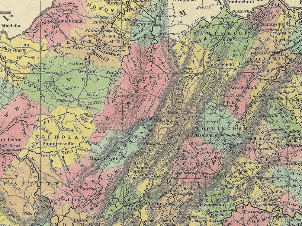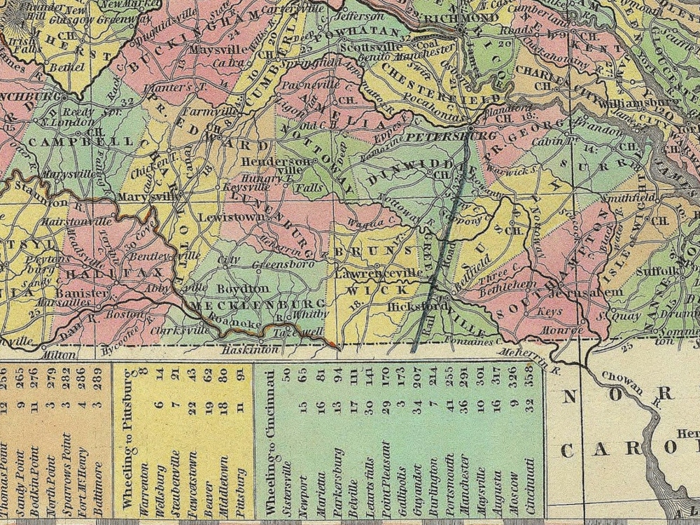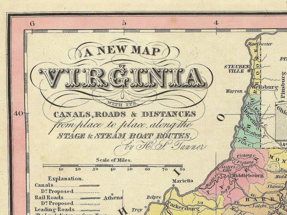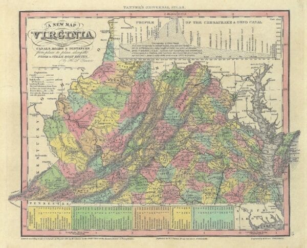 Vintage Full Coloured Map of Virginia from Henry S. Tanner’s New Universal Atlas